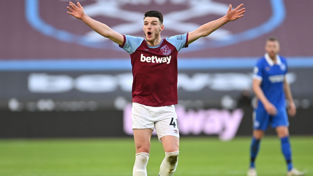 Rice, 22, is among the options in midfield for the summer and sources told ESPN he is aware of the interest, although United accept Chelsea are in pole position should he be allowed to leave West Ham in the summer. The England international would command a large fee as he has a contract at West Ham until 2024, with the option of another year. Sources have told ESPN that the Hammers hope a £70 million fee would be enough to ward off interest from interested parties.