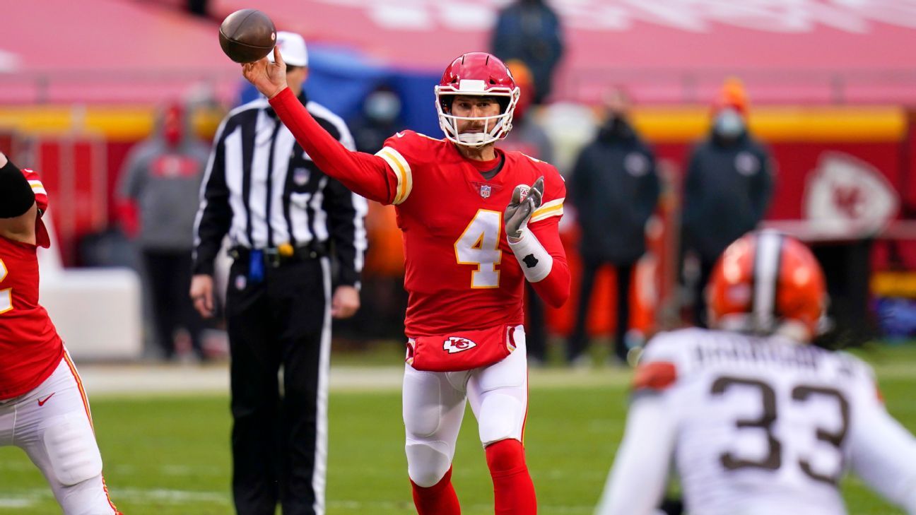 On Sunday against the Browns, Henne entered the game in the third quarter and kept the Chiefs’ season alive. He saved his best for last, though, rushing for 13 yards on third-and-14 just ahead of the 2-minute warning and then throwing, inexplicably, for a first down to receiver Tyreek Hill on fourth down from the Kansas City 48-yard line to seal the game.