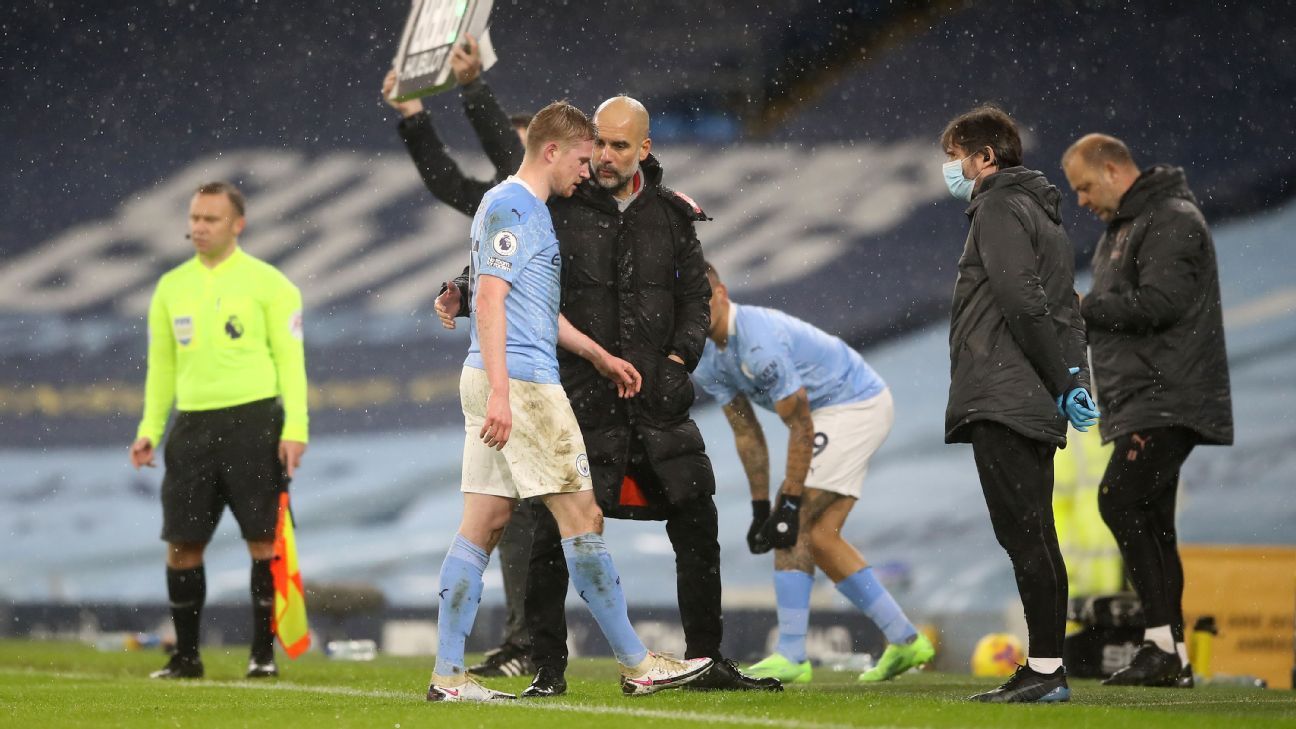 Guardiola said De Bruyne’s injury could be a result of a packed schedule.