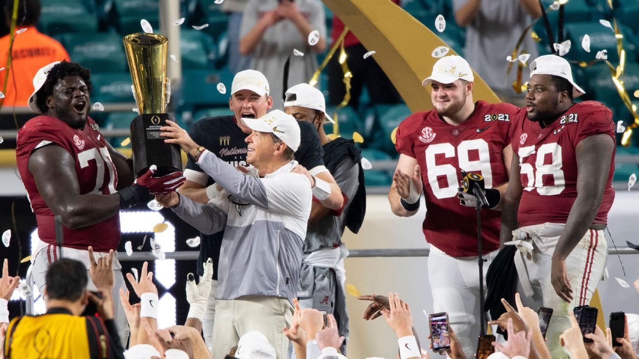 Alabama obviously leads the way with six titles in that span, but this hasn’t been just a one-horse town. When the Tide have slipped, others have picked up the slack. Their two worst seasons in this span came in 2010 and 2019, when Cam Newton‘s Auburn and Joe Burrow‘s LSU, respectively, took the crown.