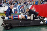 Alex Lewis gets carted off the field after making a block on a run play in the fourth quarter.