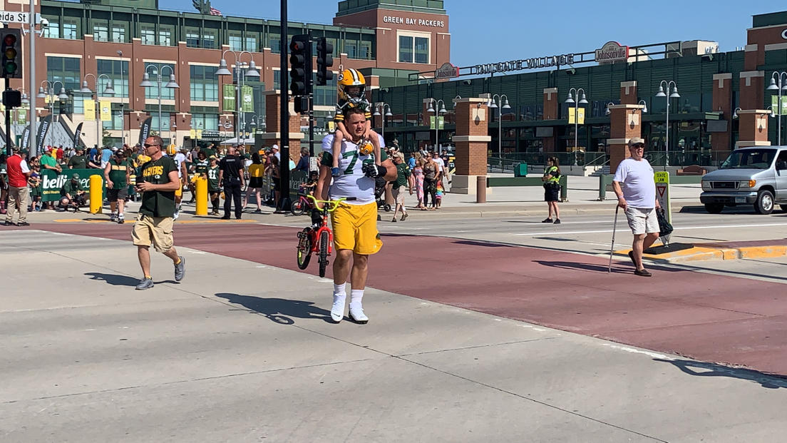 Seen a lot of different ways Packers players have done the kids bike thing but can’t say I’ve seen anything quite like what offensive lineman Gerhard de Beer is doing.