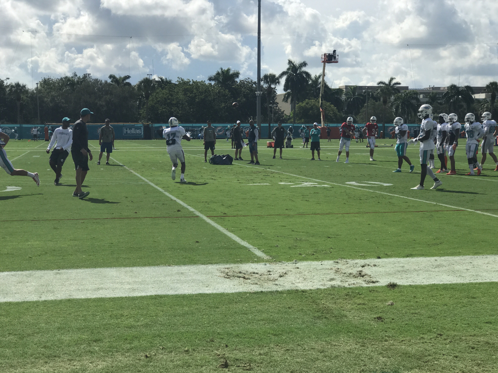 Saturday was Ryan Fitzpatrick’s worst day at practice. He was off on his accuracy at times and just had to run to T.N.T. wall after a mishandled snap with Chris Reed. Josh Rosen, on the other hand, had his best session including a nice play-action TD to Nick O’Leary. First glimpse of a true back-and-forth QB battle. If you’re keeping score through three days of camp, Fitzpatrick has won two days and Rosen one.