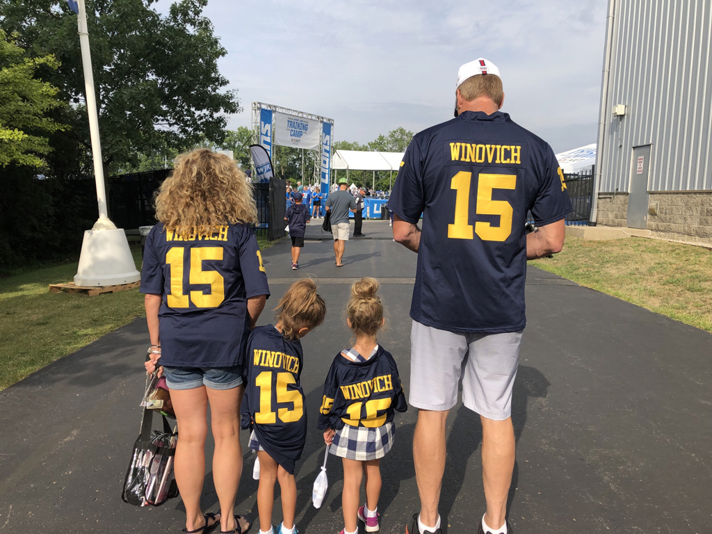 Patriots rookie DE Chase Winovich (Michigan) has good family support on hand for today’s joint practice in Allen Park, Michigan.