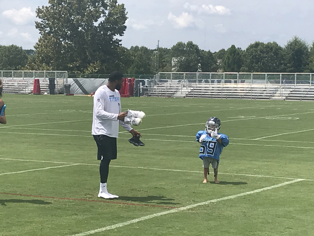 Wesley Woodyard gives his son Greyson a chance to be his ‘mini-me’ after Titans practice today.