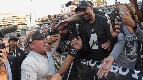 “I guess in a lot of ways I was raised here, you know what I mean? It’s the beginning of my NFL coaching career in a lot of ways, at least head coaching career. I just love it here. I had my first son here and I kind of have a lot of history here, and some of my friends, a lot of my friends, are in the Black Hole. A lot of my only friends are here. I don’t have a lot of friends except the guys in the Black Hole. I get emotional talking about it. One day we were playing and it was pregame warm-ups, and I looked over there and I saw my mom in the Black Hole. I said, ‘Somebody go get my mom.’ My favorite memory, though, was really when Al Davis would come out and I would see him down in there in the Black Hole with the fans. That was really cool for me. I enjoyed that a lot.”