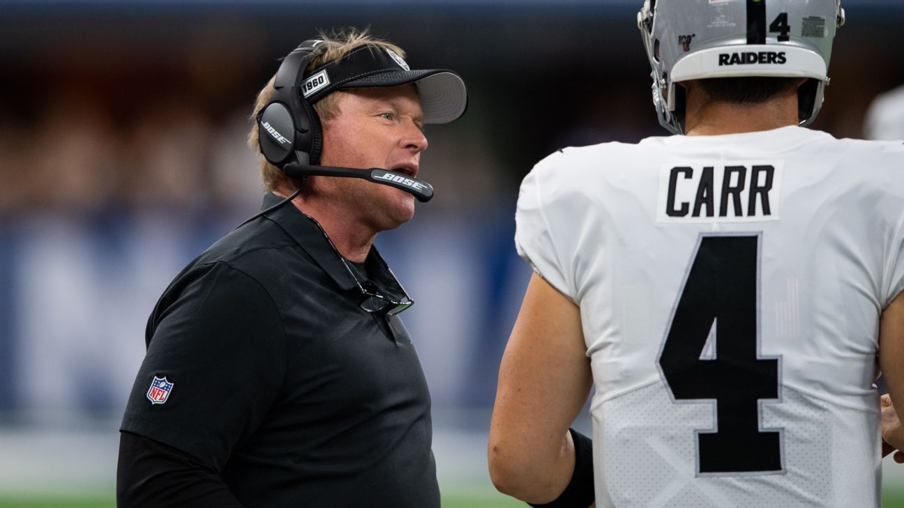 ALAMEDA, Calif. — While Oakland Raiders coach Jon Gruden said he accepted the NFL’s apology from Al Riveron, the league’s senior vice president of officiating, for blowing a call on Derek Carr’s slide near the sideline, Gruden was far from “fulfilled” by the mea culpa.