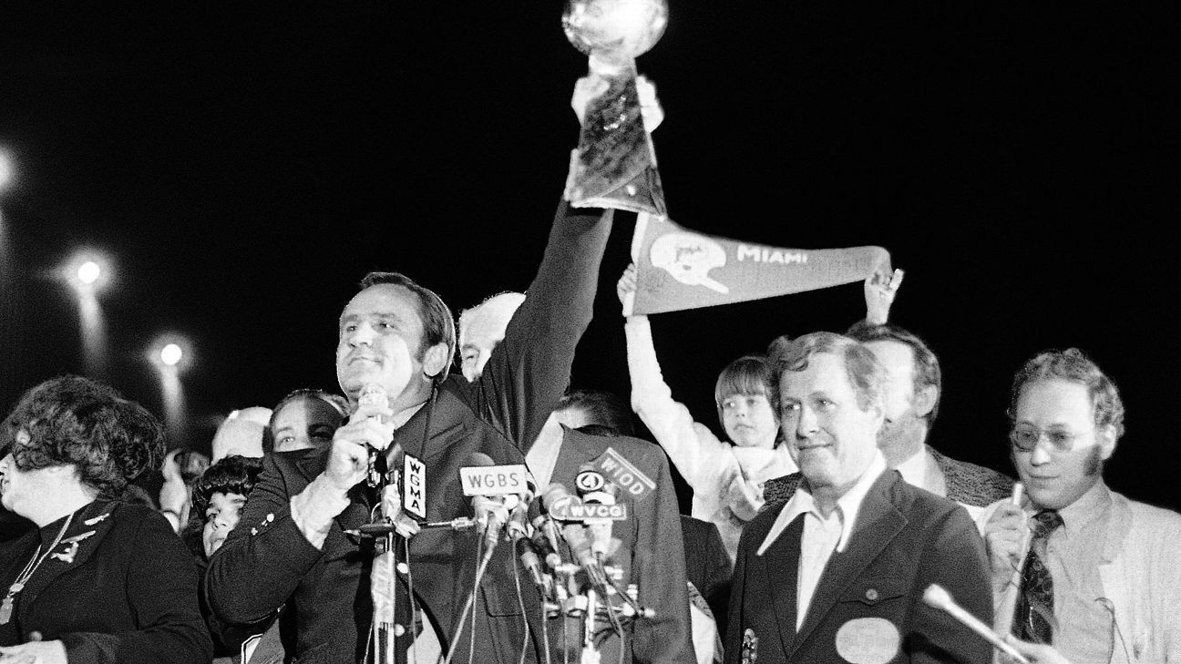 The NFL named the 17-0 1972 Dolphins the greatest team in NFL history as a part of its “NFL 100 Greatest” series. Many of the surviving members of the 1972 Dolphins were at Hard Rock Stadium on Sunday to be honored, including coach Don Shula, fullback Larry Csonka, quarterback Bob Griese, receiver/returner Mercury Morris, offensive lineman Larry Little and defensive back Dick Anderson.