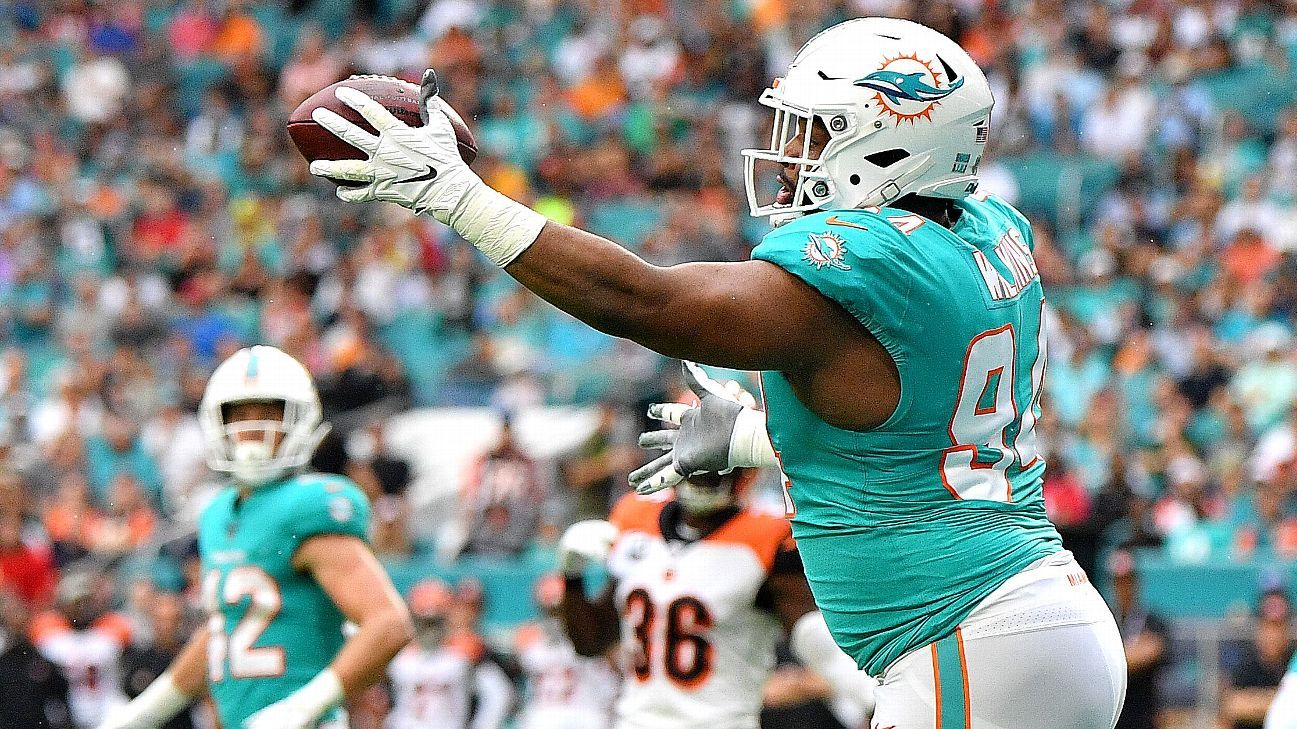 Christian Wilkins, a 315-pound rookie defensive lineman who considers his playing alter ego to be a white Power Ranger, morphed into a receiver on Sunday.