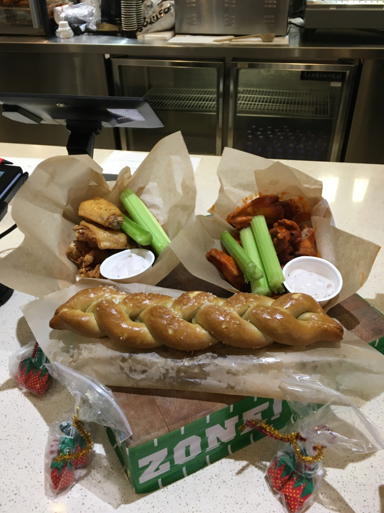Wings for $14, pretzels are $9.