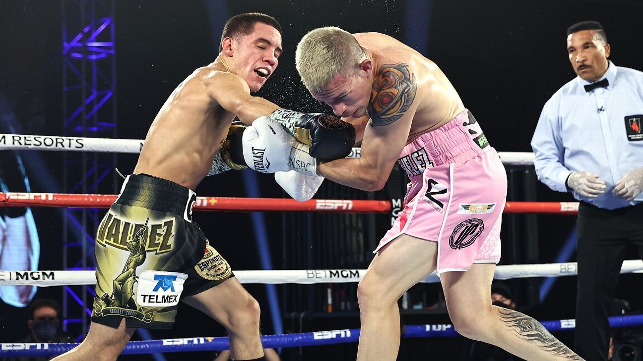 Velez (29-7-1, 21 KOs) put Valdez on the defensive early on, but Valdez (28-0, 22 KOs) eventually settled in and began to chip away. A left hook sent Velez to the canvas at the end of the fifth round, and then in the ninth a series of power punches buzzed Velez.