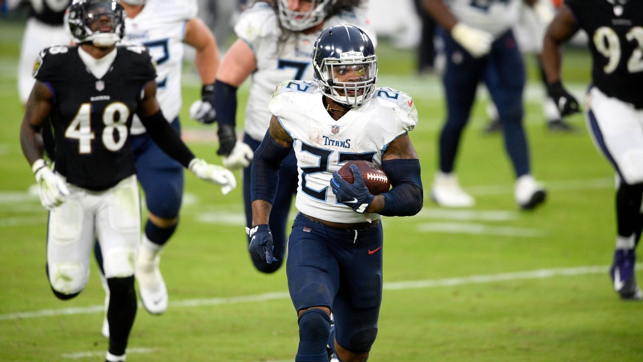 Henry can expect the high volume of carries to continue as the Titans enter the postseason on Sunday against the Ravens (1:05 p.m. ET, ESPN/ABC). The 6-foot-3, 247-pound back ran the ball 83 times in last year’s postseason, including a 30-carry, 195-yard performance in a 28-12 win over the Ravens in the divisional round.