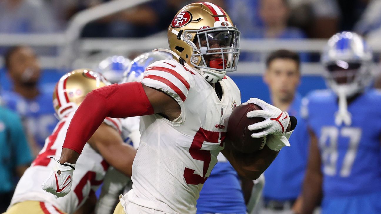 Greenlaw appeared to suffer the injury while returning an interception 39 yards for a touchdown just before halftime of last week’s 41-33 win in Detroit. Azeez Al-Shaair replaced Greenlaw after the injury and Greenlaw did not return to the game.
