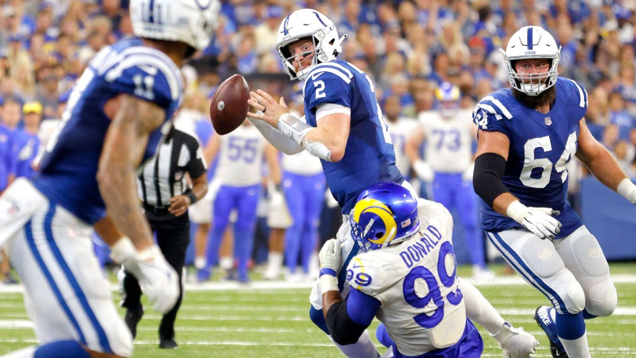 Eason was slow with his progressions and threw every pass with the same fierce velocity of New York Yankees closer Aroldis Chapman. He’s also the same Jacob Eason who locked in on tight end Jack Doyle, making it easy for Rams cornerback Jalen Ramsey to intercept him in the fourth quarter Sunday.