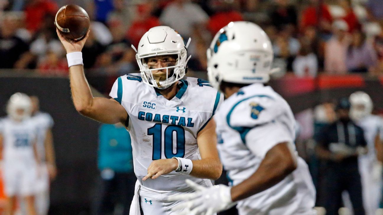 QB Grayson McCall, Coastal Carolina. He has completed 71% of his passes in his already-storied career, with a patently absurd 54-to-6 TD-to-INT ratio. He was eighth in Total QBR last year. He rules.