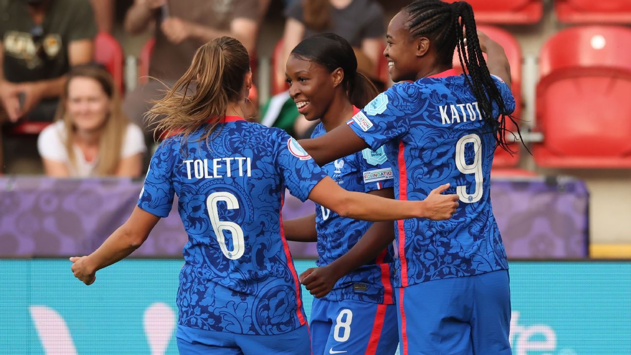 France, who went through their qualifying group without conceding a goal but have yet to win a major women’s tournament, were 3-0 up in the 38th when Delphine Cascarino lashed in a powerful strike.