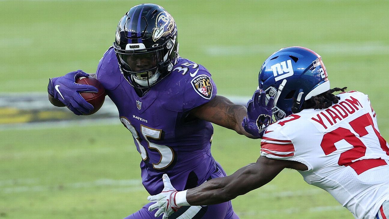 OWINGS MILLS, Md. — In a backfield in transition, the Baltimore Ravens activated Gus Edwards off the physically unable to perform list on Saturday and placed J.K. Dobbins on injured reserve.