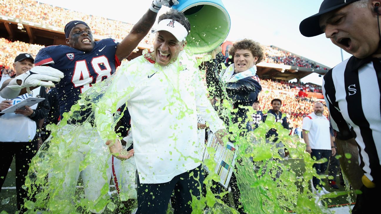This season, Arizona showed flashes of progress under Fisch by beating no. 9 UCLA at the Rose Bowl — their first top-10 road win since 2015 — and taking care of rival Arizona State in the Territorial Cup.