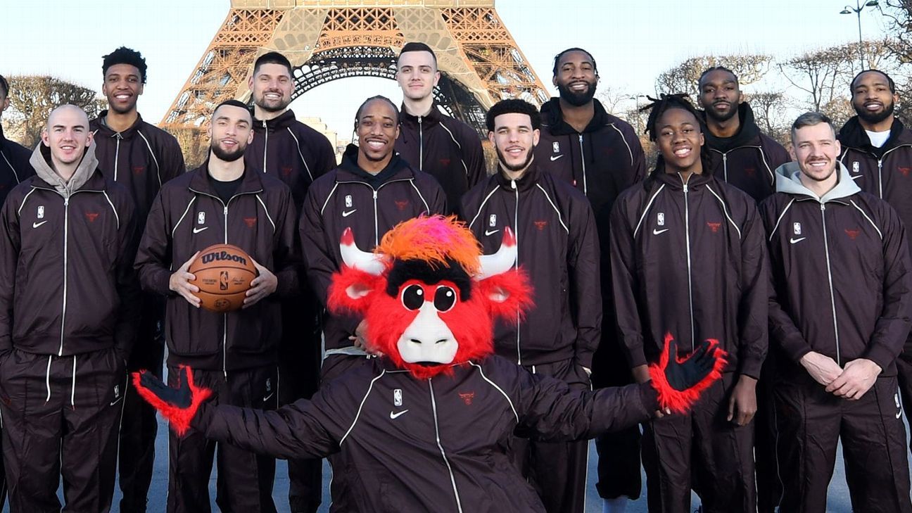 Bulls and Pistons players posed for photos at the Eiffel Tower upon arrival.
