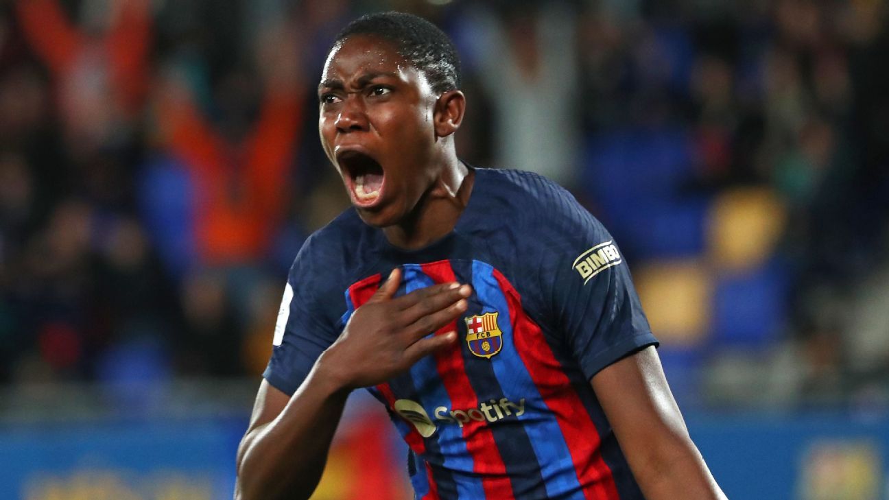 Asisat Oshoala struck a hat-trick, Ana-Maria Crnogorcevic scored two, Mariona Caldentey was also on target and 16-year-old Vicky Lopez scored her first goal for the club as Barcelona reached the landmark.