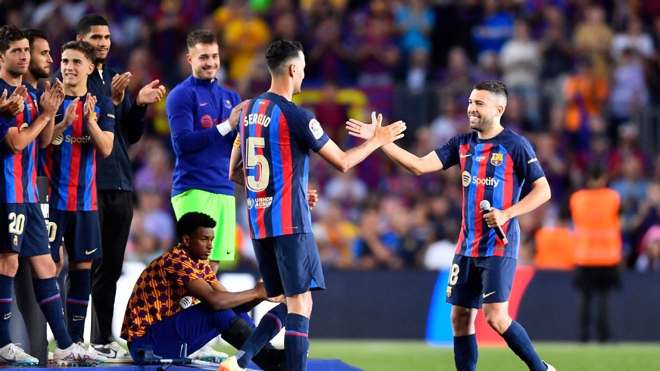 Sergio Busquets and Jordi Alba bid farewell to Barcelona on Sunday on an emotional evening as the LaLiga champions ran out 3-0 winners against Mallorca.